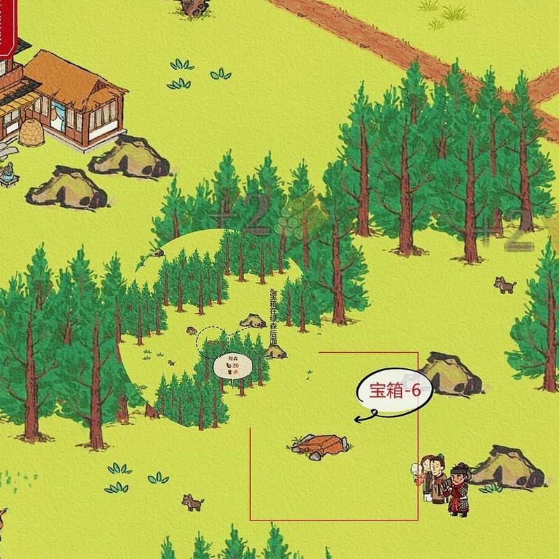 宝箱6位于小树林修旗子区域,内含补天石十块。