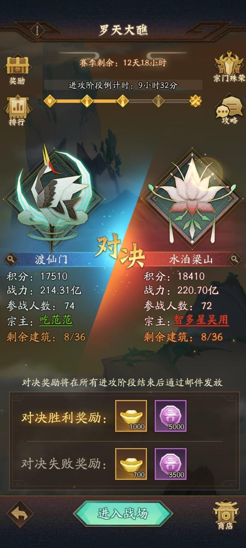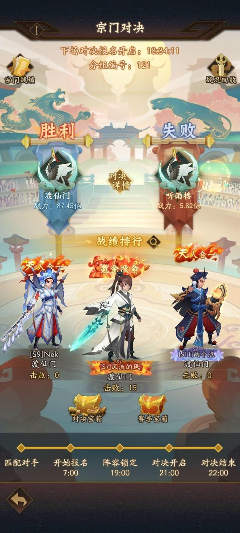宗门对决每两日开启一次,于仙界范围内随机匹配对手。