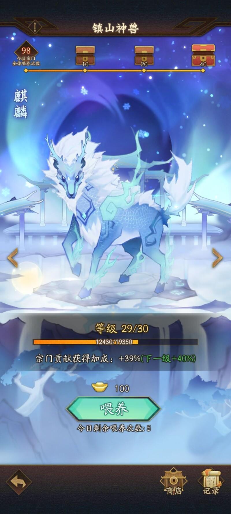 麒麟:优先喂养,提升宗门贡献加成效果。