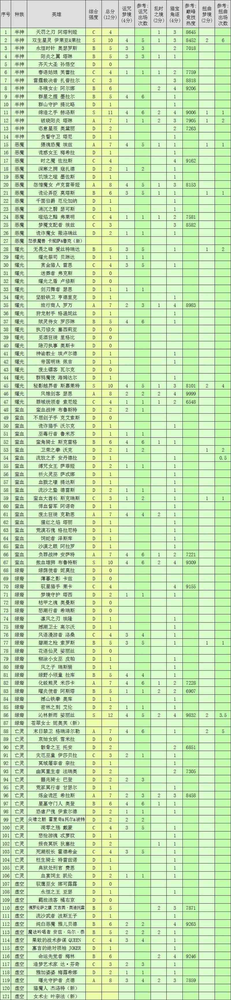 特制英雄强度排行榜,供新手参考使用。