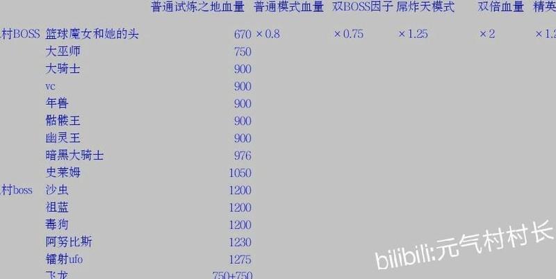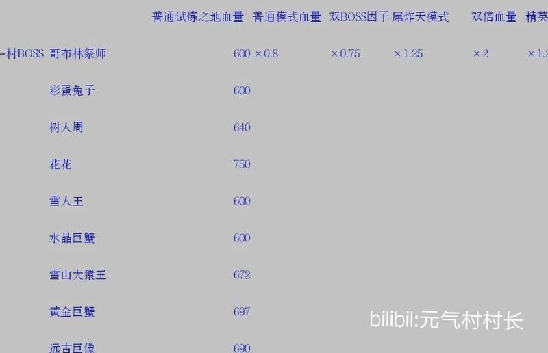 普通模式试炼之地所有BOSS血量数据