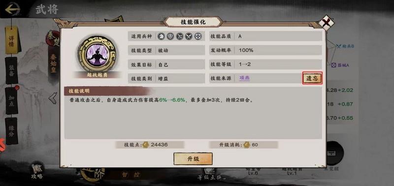 每位武将最多可配备三个技能,包括一个固有技能和两个自选技能。第三个技能栏需在武将觉醒后解锁,觉醒条件为武将等级达到20级且固有技能升至10级。