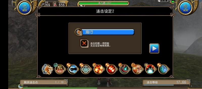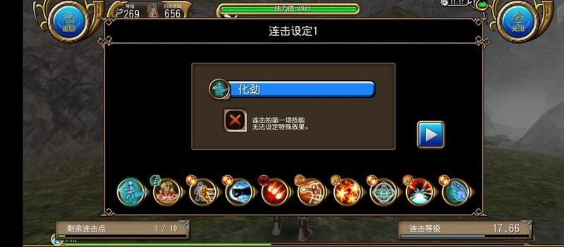 刷完等级后就这么几个连击,按顺序放置即可,前三个技能可快速释放,后续技能自动触发,另有一个破坏者技能需单独设置。