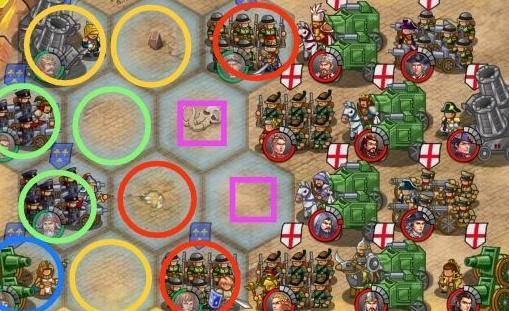 第四次调整后,我方近战将领获得额外接触位置,可主动输出,不再被迫聚集后方承受攻击。
