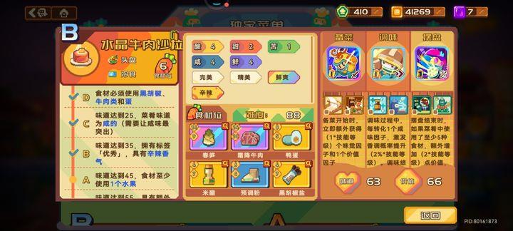 除了五格和六格外的菜品,其他只需满足解锁条件即可。例如沙拉需要蔬菜或水果,只要上一个符合条件的食材就能解锁下一道菜,不必追求S评级,因为S级唯一的用处只是占用菜谱位置。