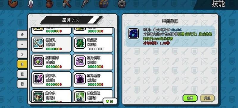 70级前技能加点与血巫相似,优先将辅助增益类技能点满,魔杖掌握可暂缓,待资源充足再补。灵力武装中疾行术建议点1级,若追求移速也可点满。达到70级后,优先加满蓝炎武装,其余技能按图示逐步点满即可。属性分配推荐4智力1灵力,若重生次数少、属性点紧张,可全加智力以提升输出与蓝量。关于蓝炎的自然领域,高等级配合1000点灵感提供的50%减冷却,再加上德鲁伊延长持续时间的加成,该增益效果几乎可常驻,大幅提升生存能力。