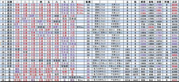 说明2:以红、紫色标示同类/全部汤底/拉面中属性最高或极高的数据。