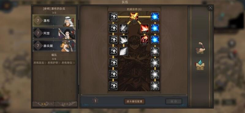 开局优先开启流火召唤技能,并装备铁人之臂。前期便可轻松建立优势。待后续技能升级完成(参考图4技能选择),战斗力大幅提升,七级后攻城无压力。战斗中尽量不带兵,即使招募也建议及时解散,以便获取更多经验值。
