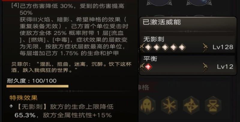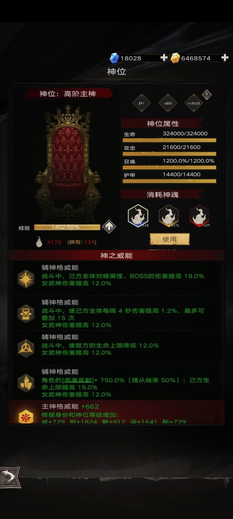 在生存属性中,闪避作用不大。减伤、格挡率和格挡效果只需保证战斗中自身生命不低于生命神格要求的75%即可,无需过高。