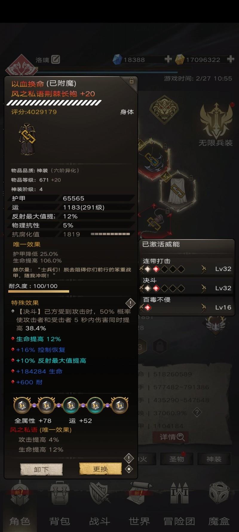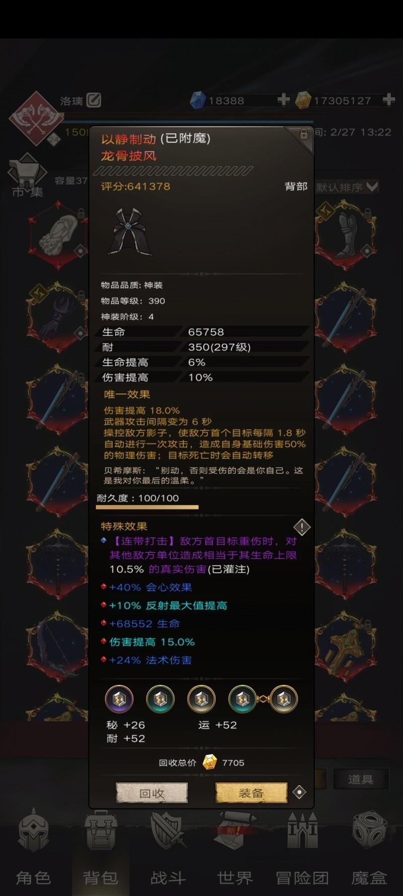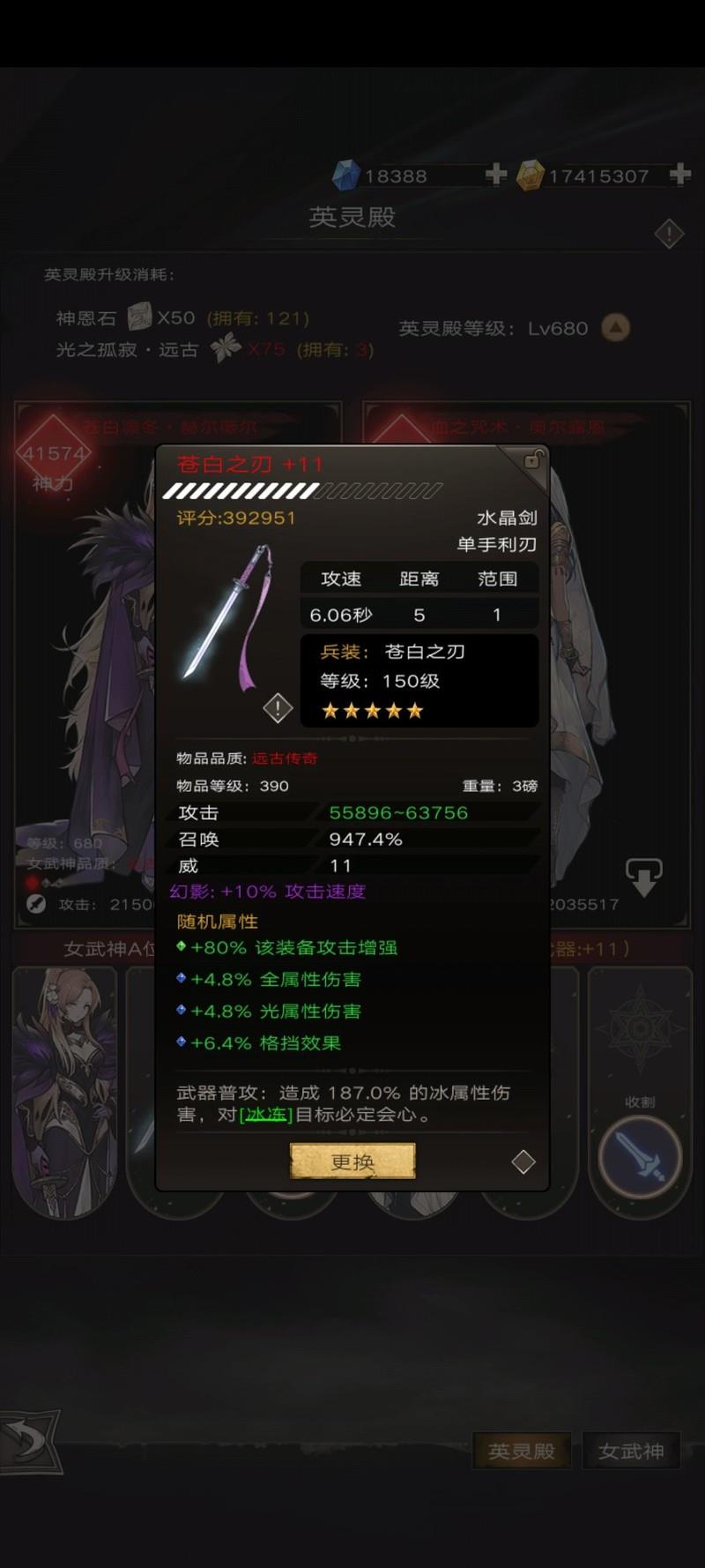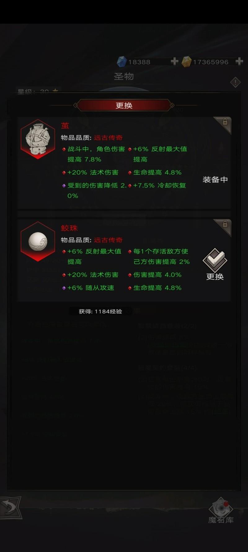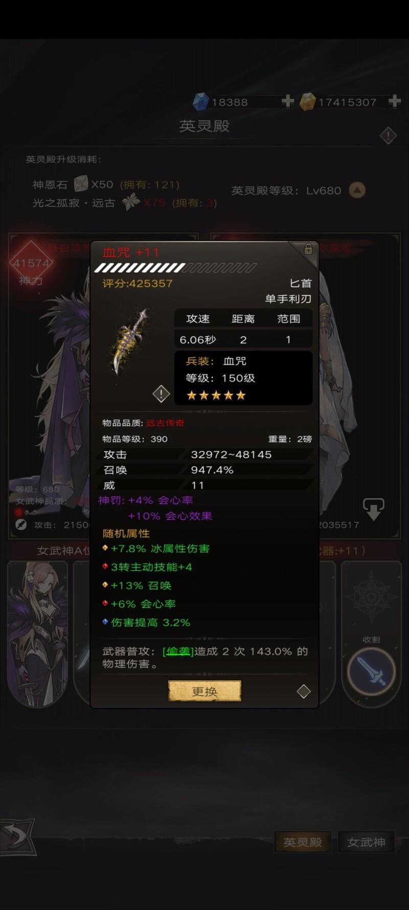 神装顺序建议:头部、首饰、身体、腿部、腰带、背部(披风加成较强,神器略弱,建议换完腿后再换背部)。