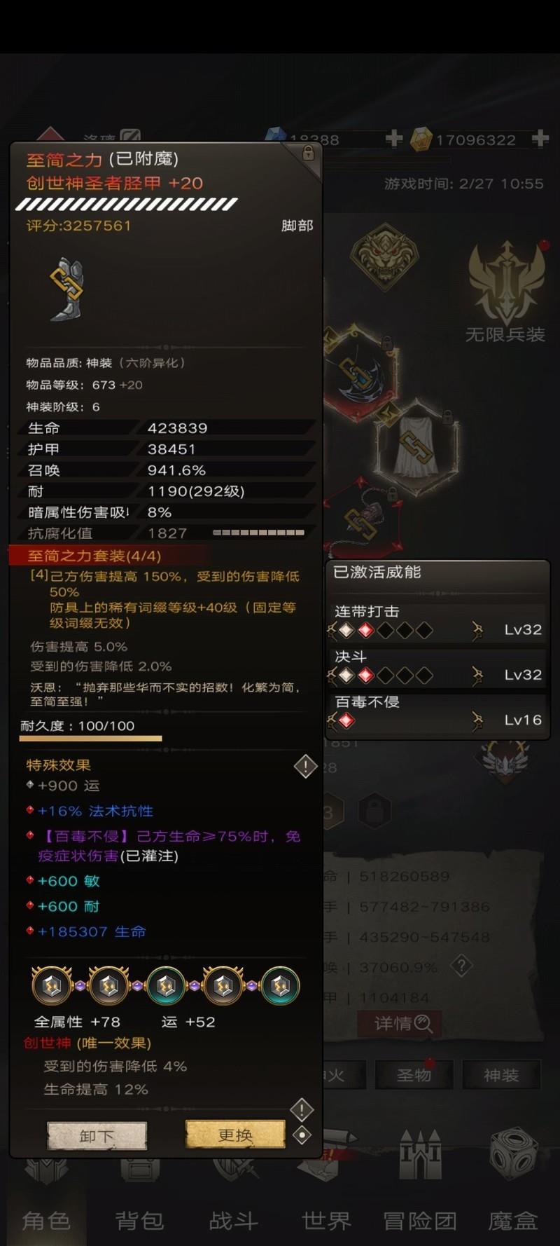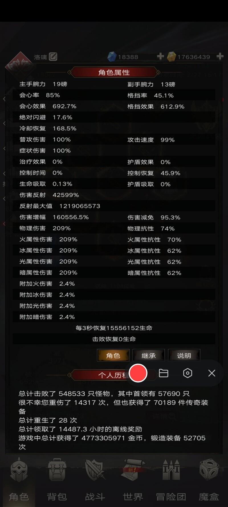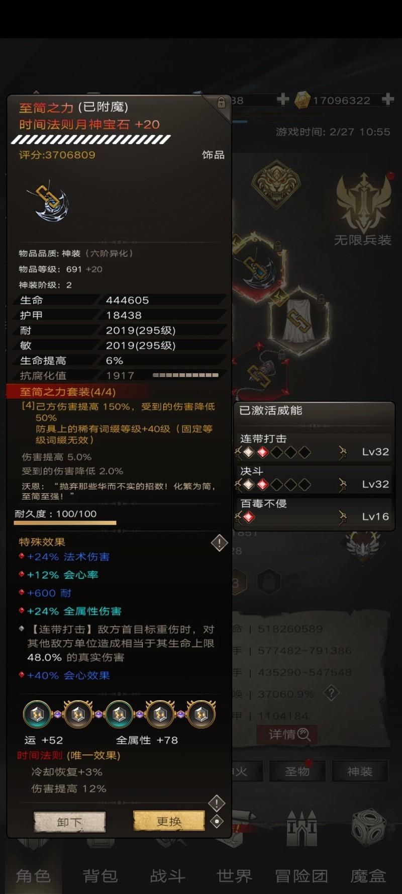 该说的差不多都说完了,下面是我的个人面板和日常刷图视频,用的是双连带的那套,吃到了过关加成,时间可能不太准确。