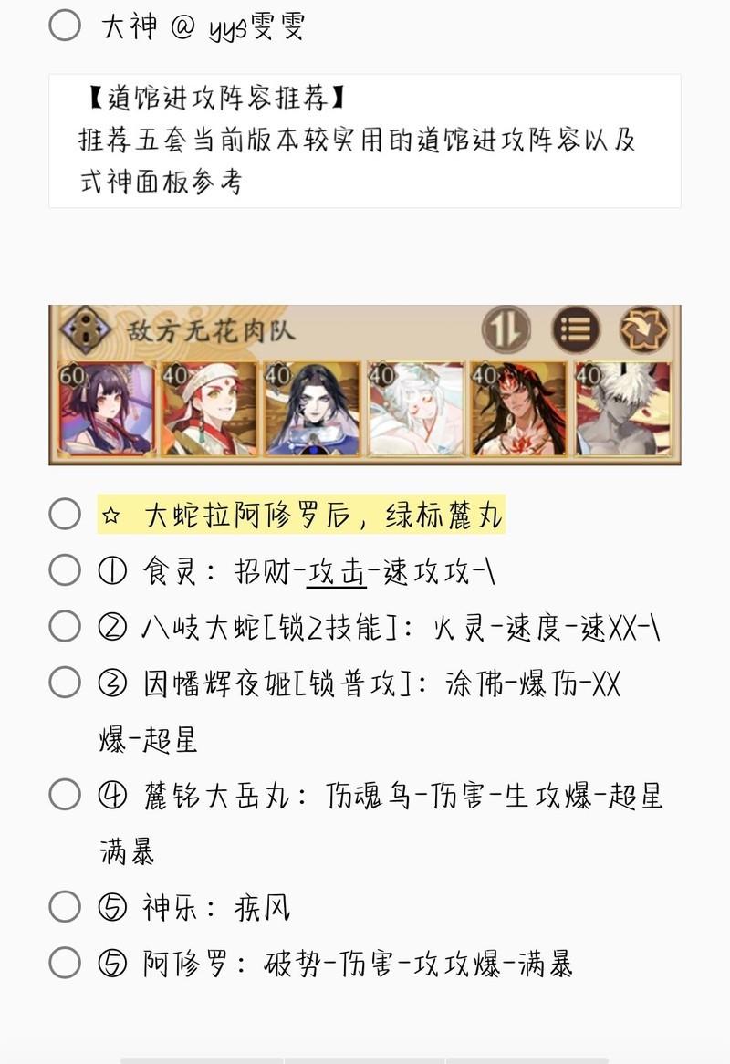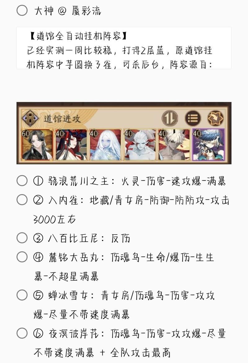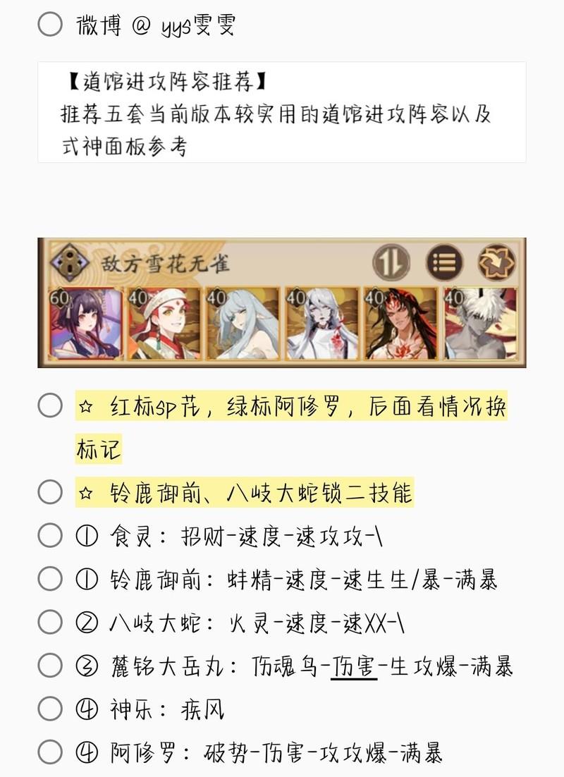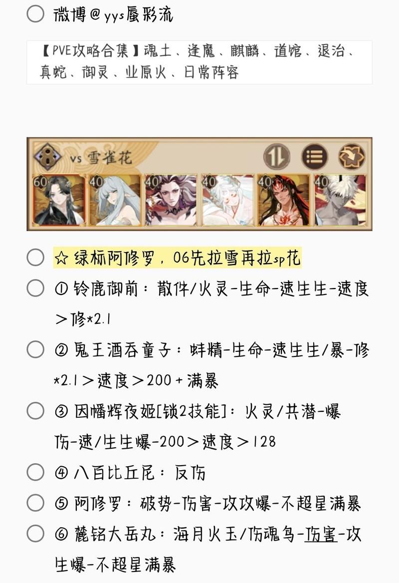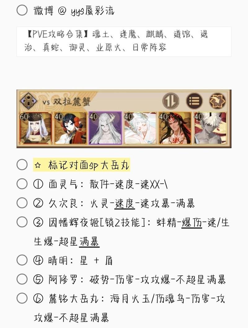 若无特别说明,阵容中的式神均需满级六星并技能点满。