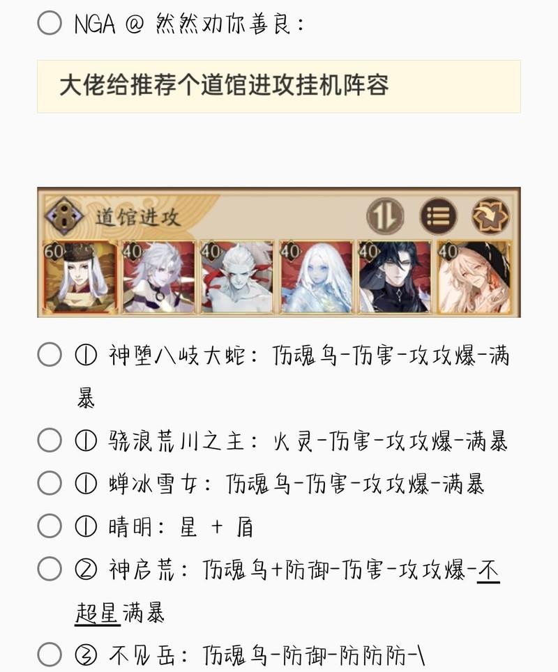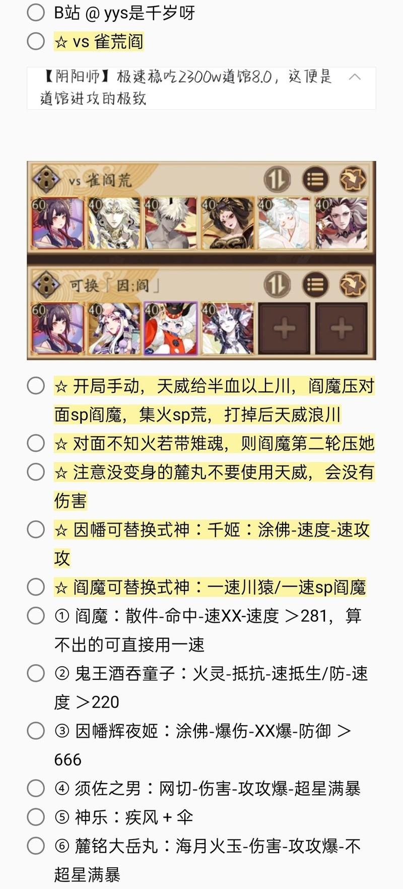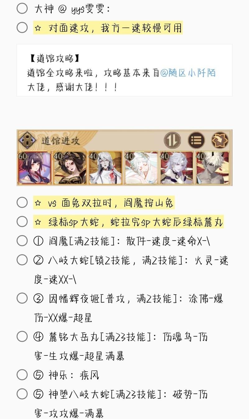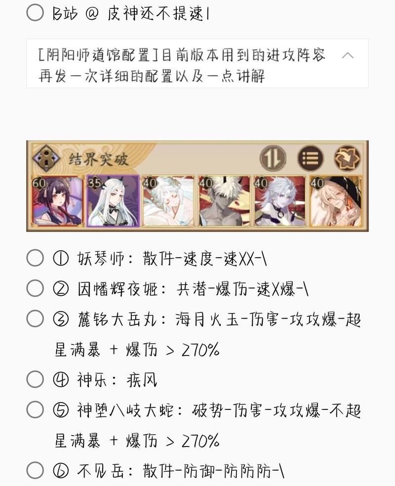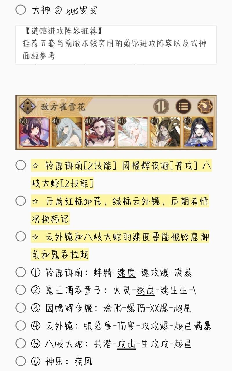 若无特别说明,阵容中的式神均需满级六星并技能点满。