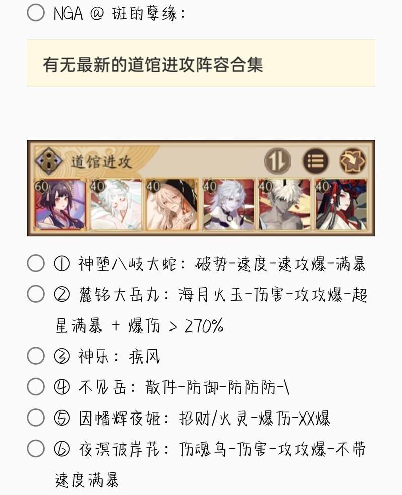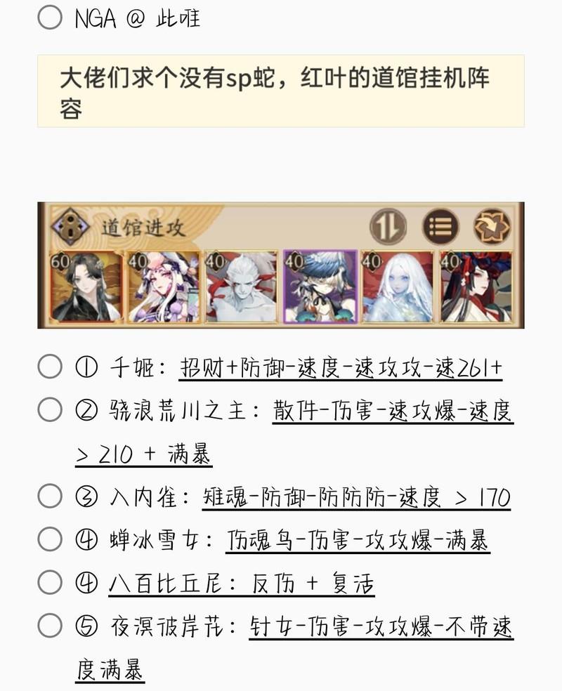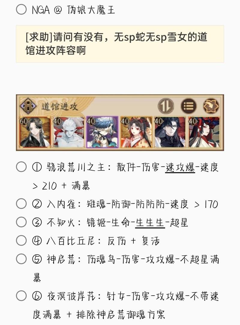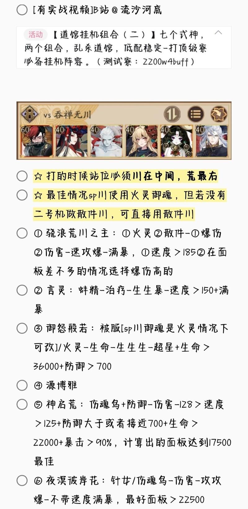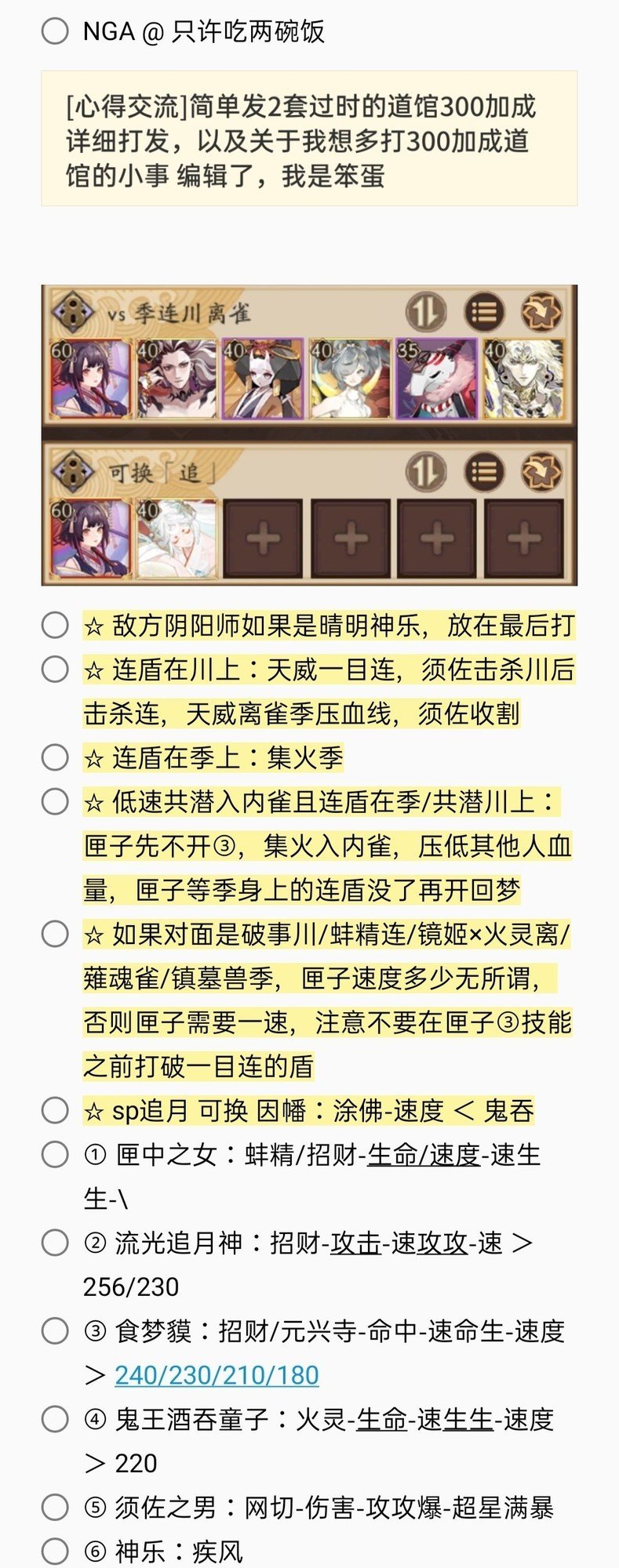 若无特别说明,阵容中的式神均需满级六星并技能点满。
