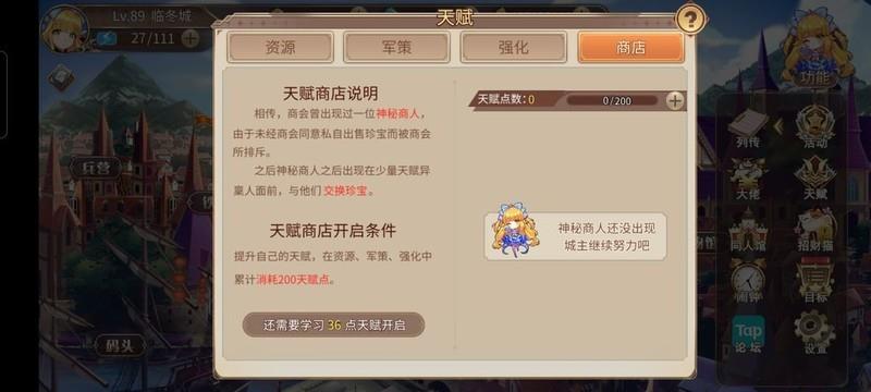 灵喵降临为必点天赋,当拥有30张灵喵券时即可激活。