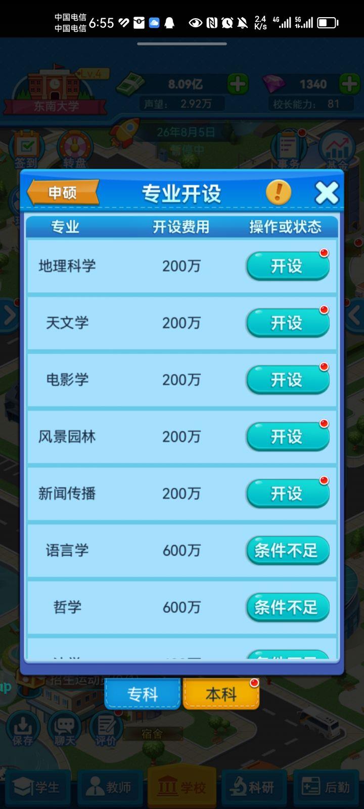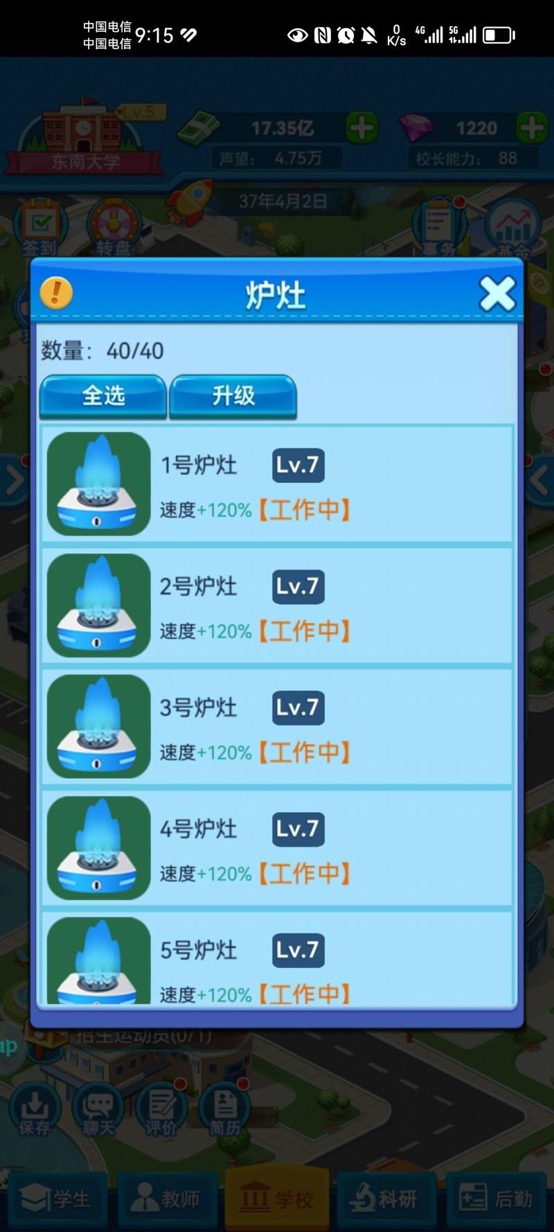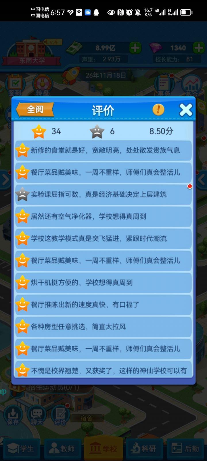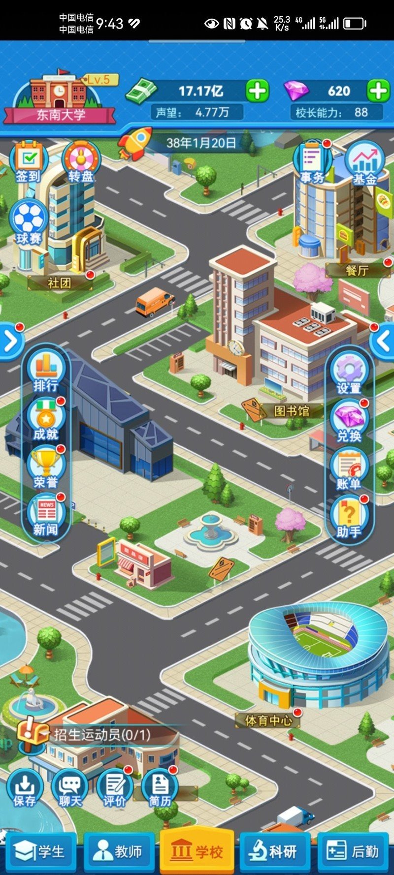 20年需关注评分,升级宿舍、教学楼、办公楼和图书馆设施各2级。