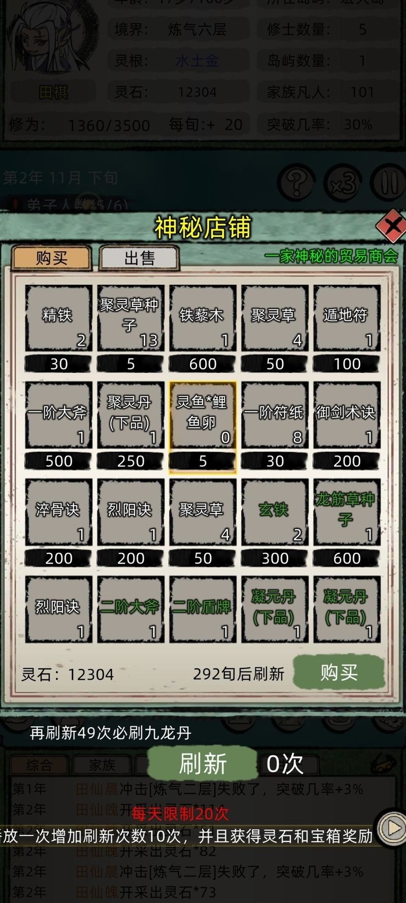因五百年未关注广告且运气欠佳,族中无人结婴,只得购置红装静候族人突破。