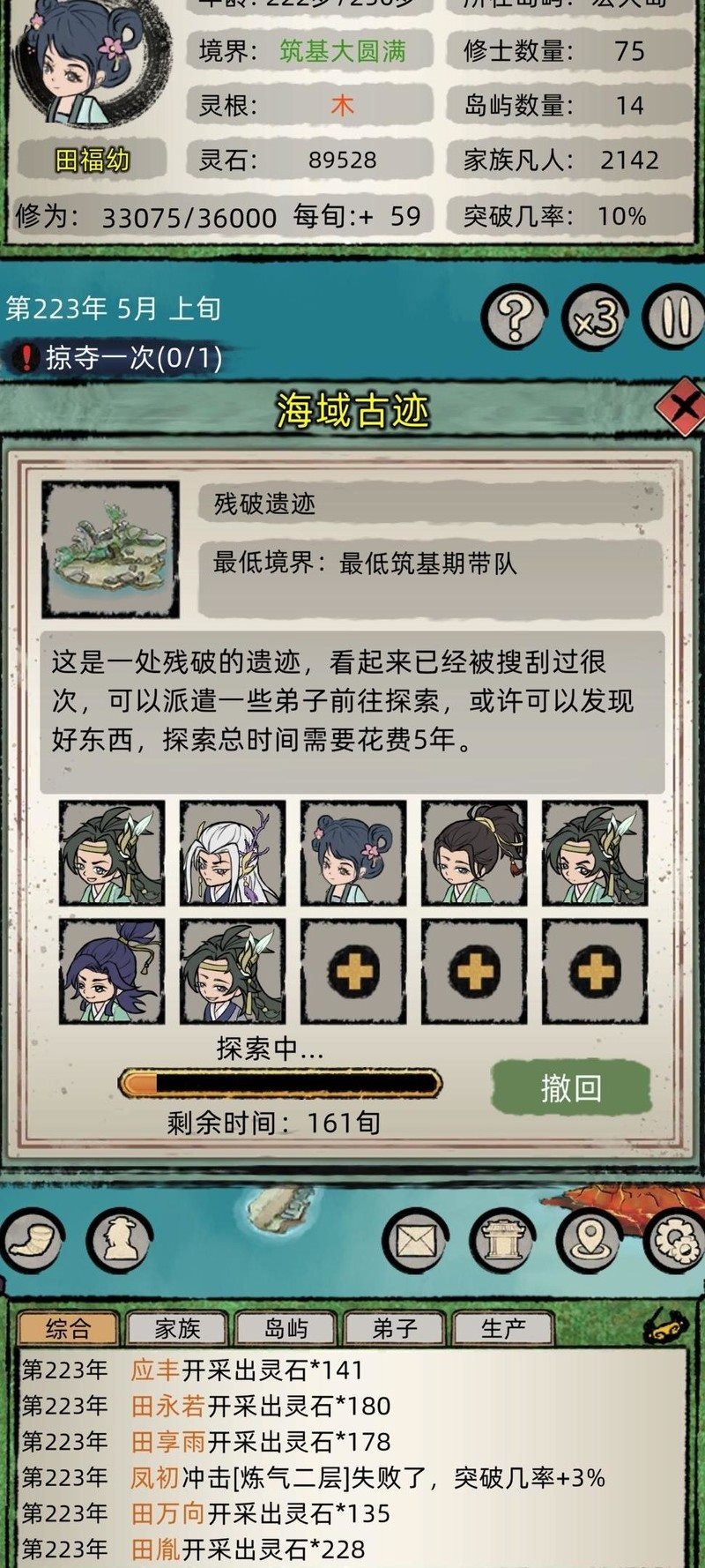 筹集资金提升二级灵脉,集结约七名筑基修士主力,攻占残破遗迹获取丰厚收益,运气佳时更有机会获得蓝色技能。