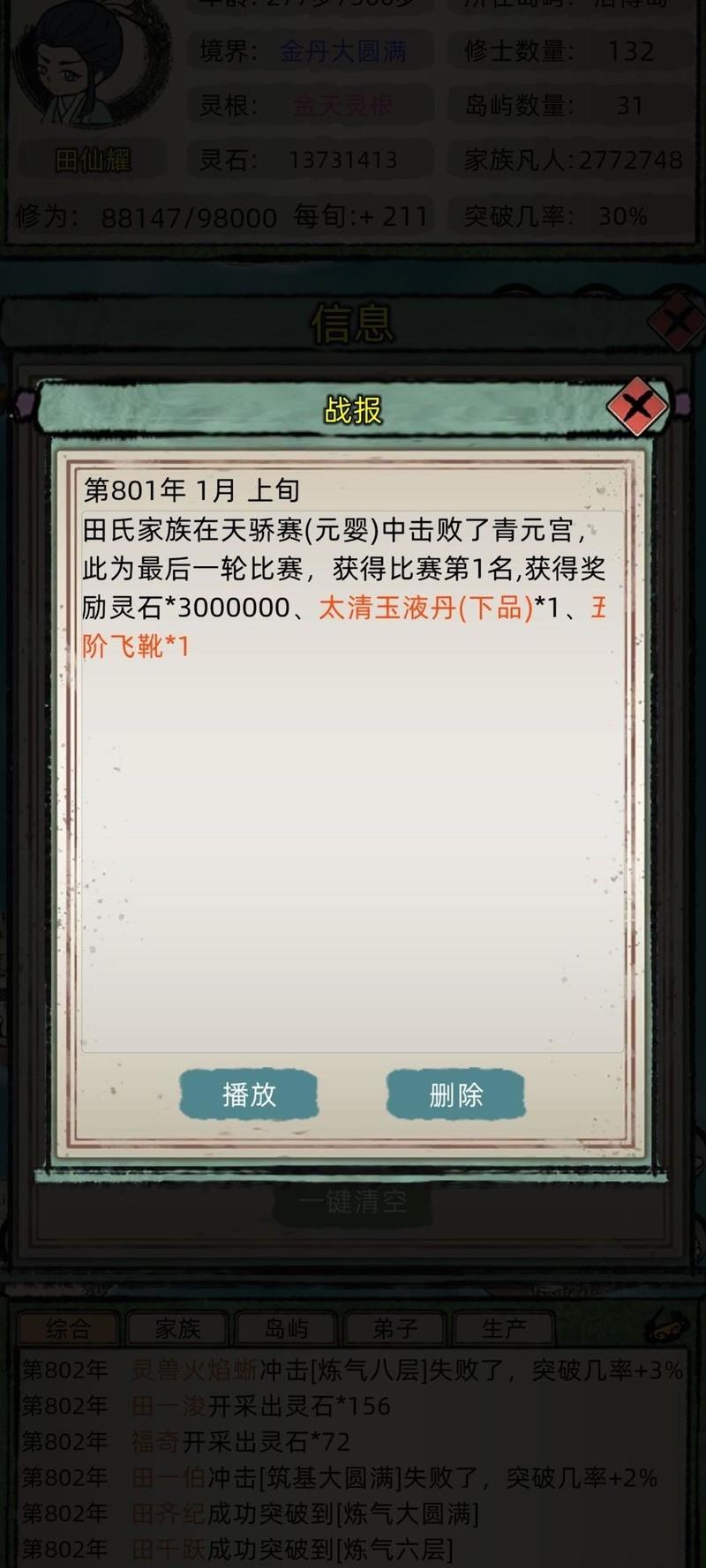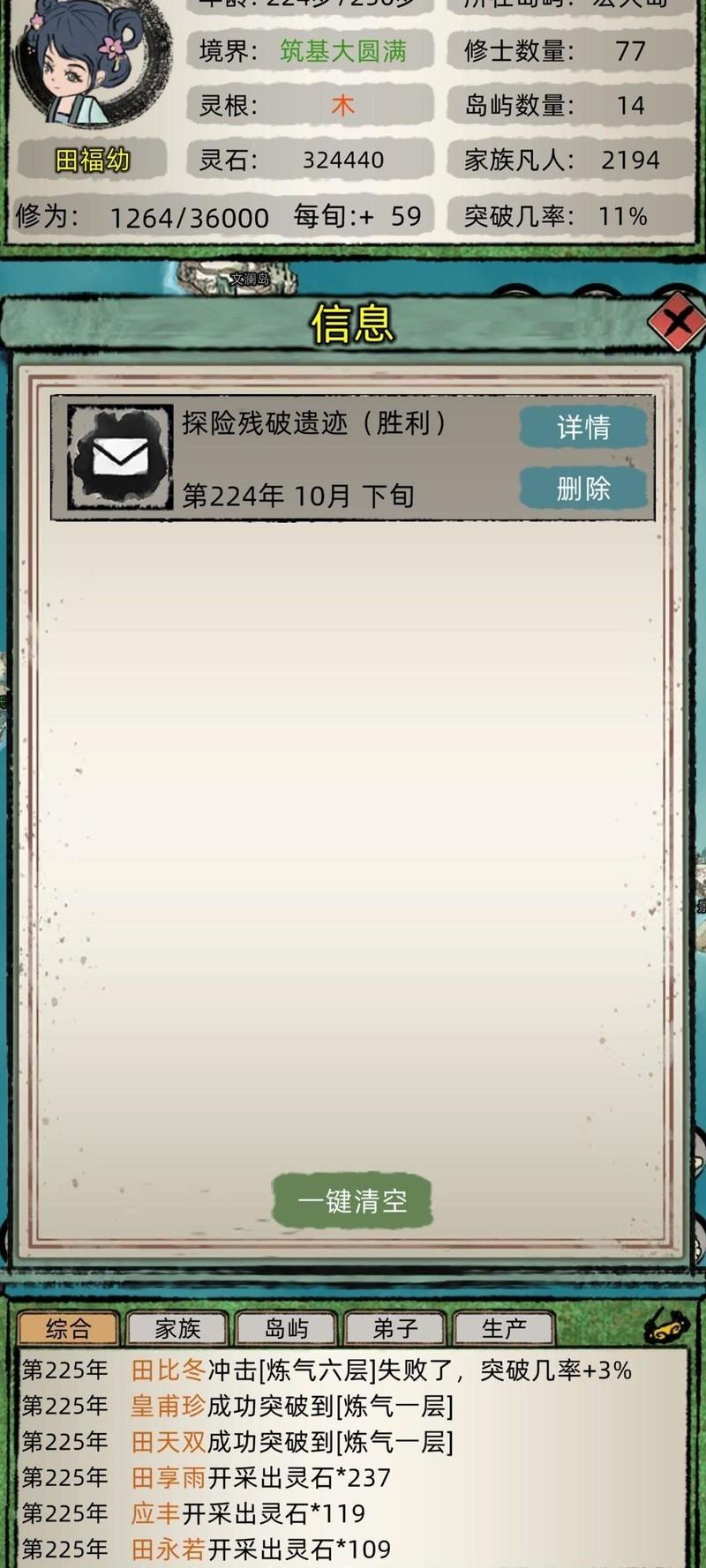 今天聊聊《修仙家族模拟器》新手入门900年攻略,适合不看广告、0功德的玩家。从微型岛开始发展,靠装备压制和神技搭配一步步稳扎稳打,最终建立强大的修仙家族。
