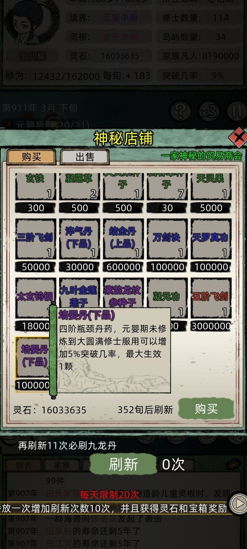 购丹加速修炼,快速培育众多元婴。