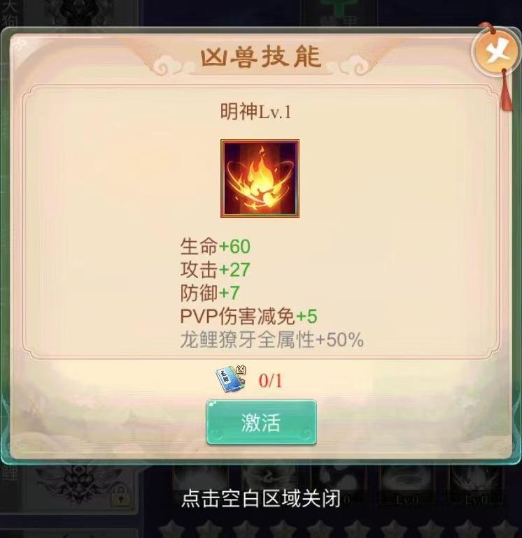 在配置凶兽时,部分凶兽的觉醒或普通技能具备PVP伤害减免效果。其中龙鲤表现尤为突出,其觉醒技能龙门之威可为主角提供15%的单体与群体伤害减免,在同类中减伤效果最为显著,因此推荐优先选用。