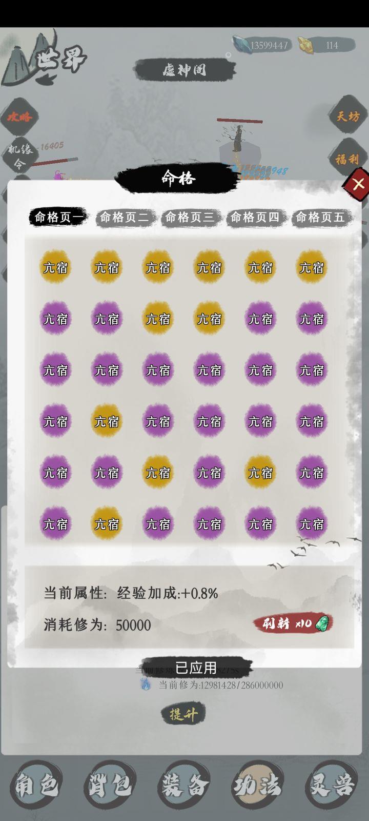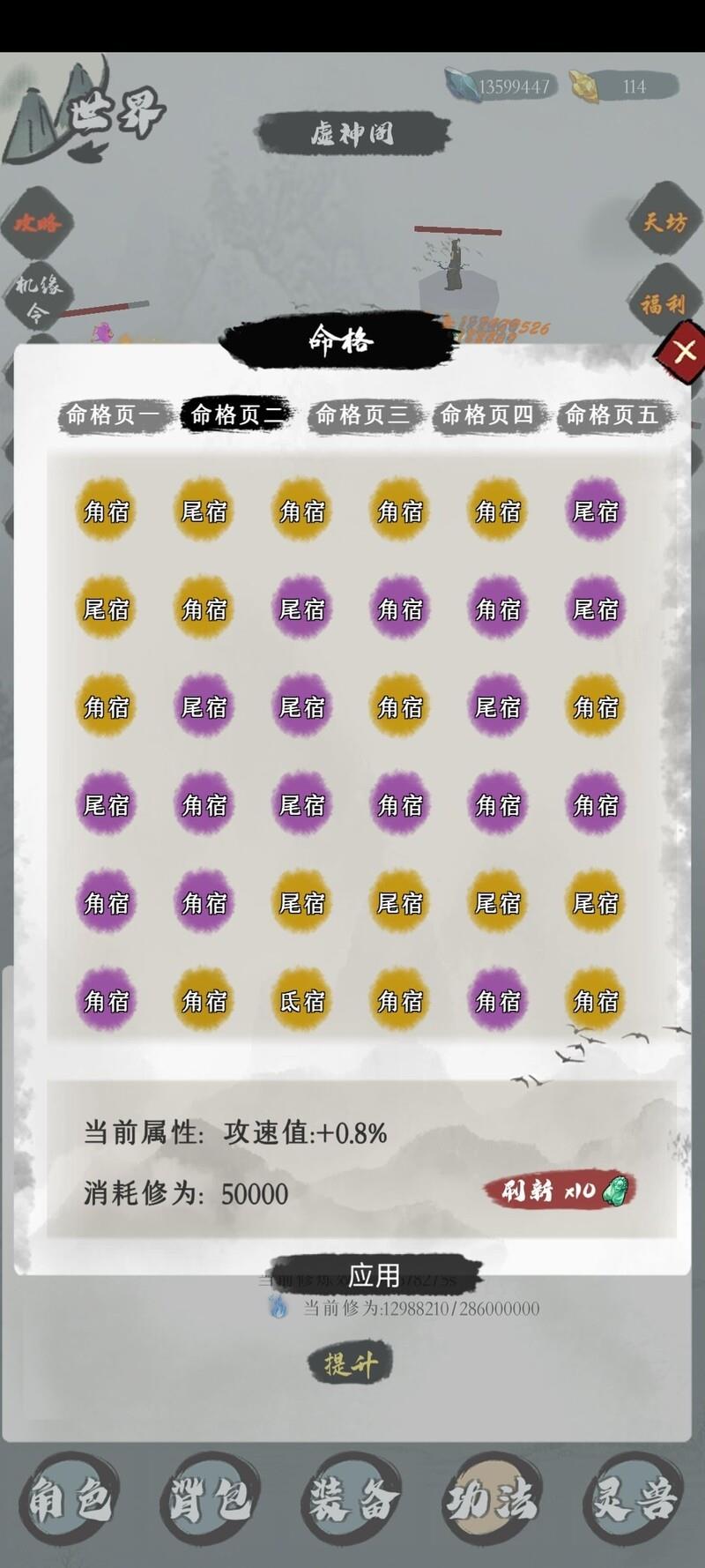 将第二页命格优先刷满角宿与尾宿,其余命格收益较低,不如在无尽塔中投入资源。刷取技巧为先全刷蓝色,再升至紫色,金色难以强求,需看运气。