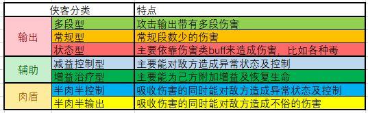侠客也有不同的分类,大致所示。