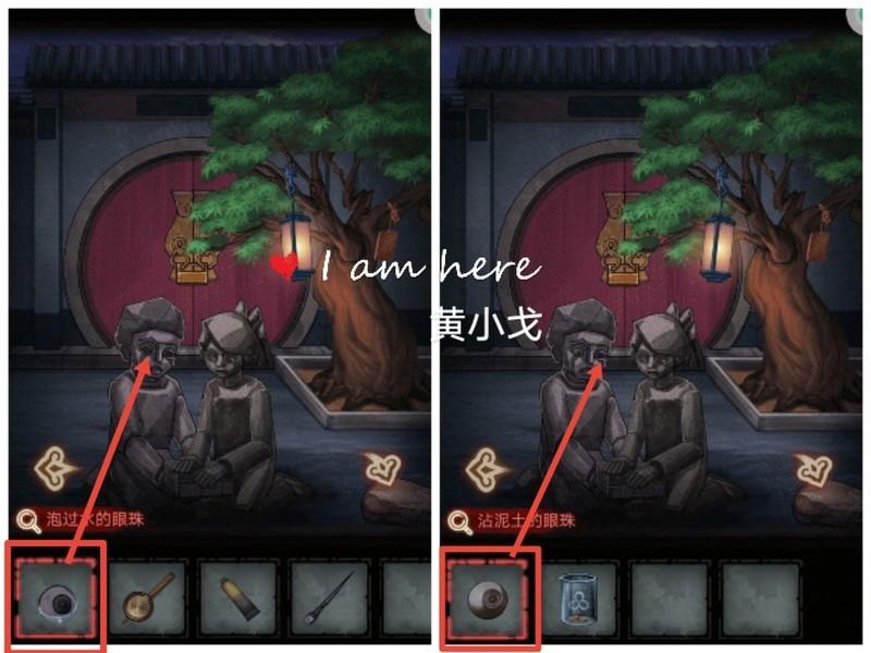 点击石像,将泡过水的眼珠与沾满泥土的眼珠放入其中。