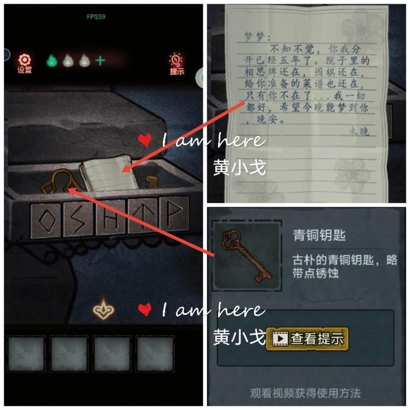 开启石盒取得青铜钥匙,阅读信件触发剧情。