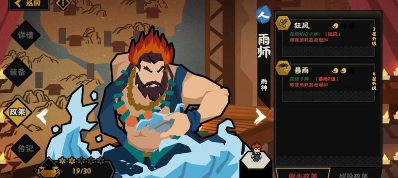 推荐使用雨师,获取容易且强度突出。守城时配置三弓手两矛兵,利用狂风守护弓手,暴雨可减缓敌方除骑兵外单位速度,并削弱敌方弓手射程。