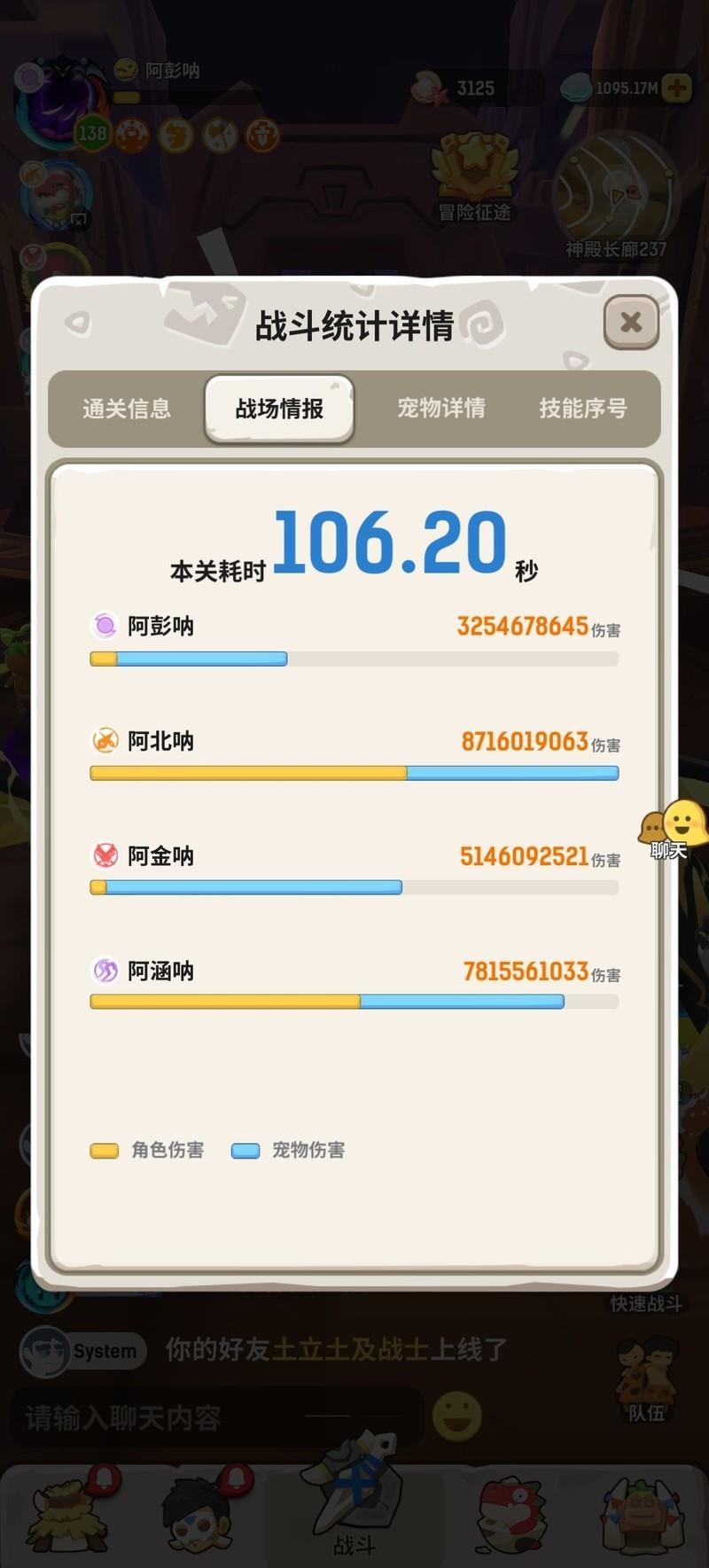 原本双C战力在6500万左右,边推进边搭配了一些技能,但最终还是没忍住换了全队精华(希望精华不会溢出,心疼我的200万海星)。只用了一天时间就通过了蒲公英,进入长廊。由于宝库不容易进,所以决定好好记录这次推图过程,先开个帖子,后续再慢慢补上详细内容。目前双C战力分别为:术士7500万,刺客7200万,还保留了一定的战力余量。