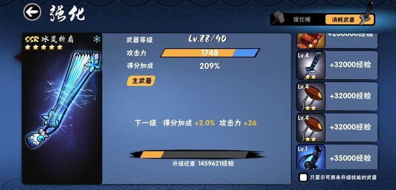 吞噬武器或升星时,同系武器可100%继承自身技能经验,并获得80%附加武器的技能等级经验。
