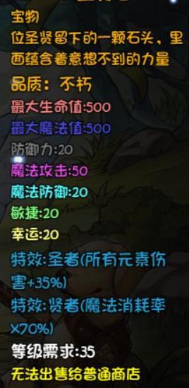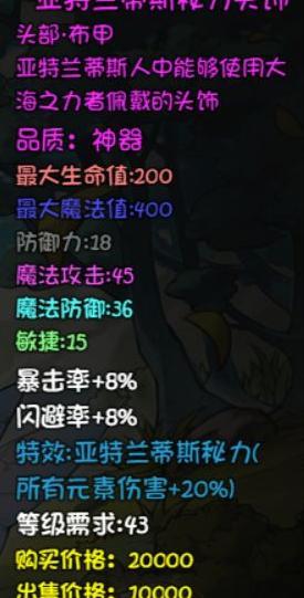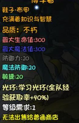 这款法师头盔性能优异,适用等级广泛,可从初期沿用至五十级,直至被天界桂冠或起源套装取代。