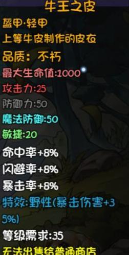 权势之冠不仅提升大量掉宝率,还是合成权势三重冠的关键材料,务必至少保留四个,切勿出售。牛王之皮为强力输出装备,可沿用至50层深渊后被青牛皮替代。狗铃则输出优异,泛用性强,直至天之上章节仍是顶尖选择,堪称全程适用的输出利器。