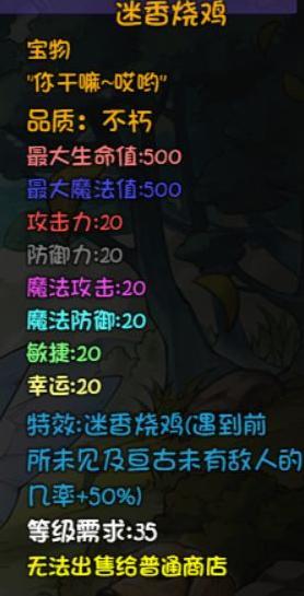 随机提升20至30点掉宝率,据其他玩家反馈,该装备的掉率加成可能存在异常,具体表现尚不明确。