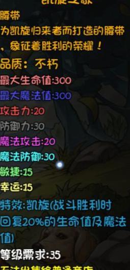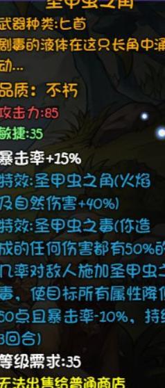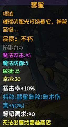 提升属性:物理与魔法攻击各增加35点,所有伤害提高5%。五叶草来自12层副本小怪掉落,韧根草由13层最终BOSS掉落,神赐草虫则出自14层前所未见与亘古未有两大BOSS。