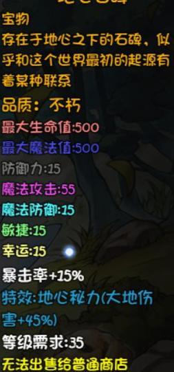 石中剑可作为过渡武器,但强度一般;暗器需等到45级深渊获取暗物质后才真正强势;地心石碑的伤害加成较为冷门,适用场景有限。