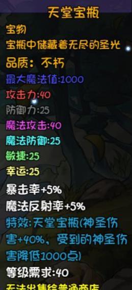 天堂宝瓶与圣甲虫之角均提供神圣伤害加成及减伤效果,整体表现平平。后者适合多段伤害角色使用,触发暴击后可降低Boss暴击概率。