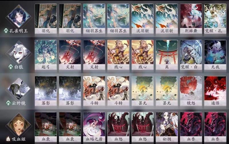 启念与幽梦通常不选用;若有诗经SSR,诂训可带一至两个,觉醒带一个;荒启命二勾被削弱,建议不带。