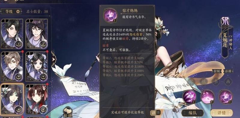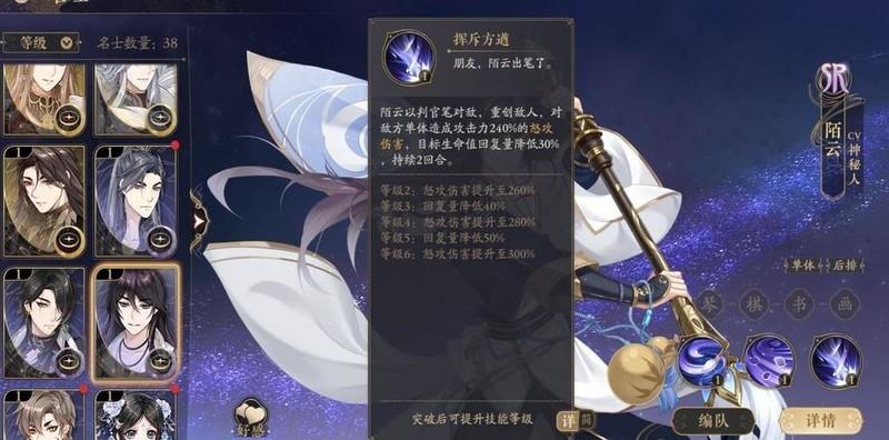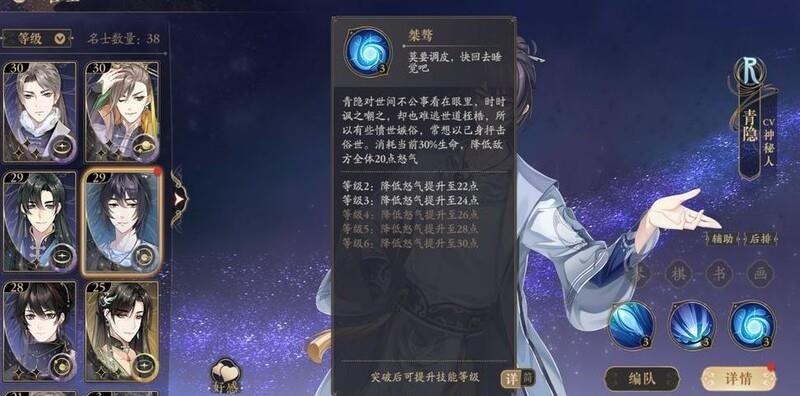 青隐位列前三,主打控制与干扰,擅长群体减怒,与桃山形成鲜明对比。虽为R级角色,基础属性较弱,需依赖高练度四艺套装及进阶技能提升表现。若想站稳脚跟,还需持续削弱敌方怒气,增强压制效果,让对手体验更舒适。