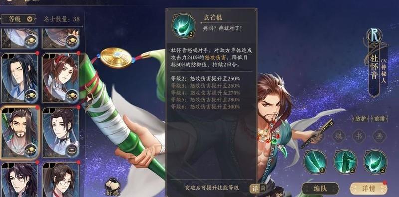 杜怀音掌握独特的大狗棒法,技能可按生命百分比回复,大招具备全游戏顶级破防与高额伤害,R级角色碎片易得,对抗BOSS时表现尤为出色。