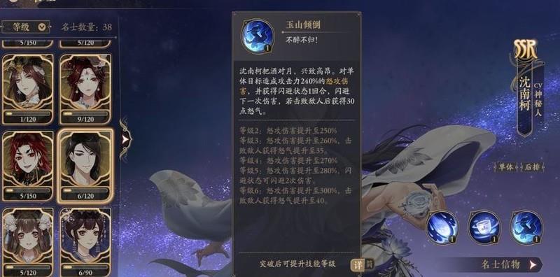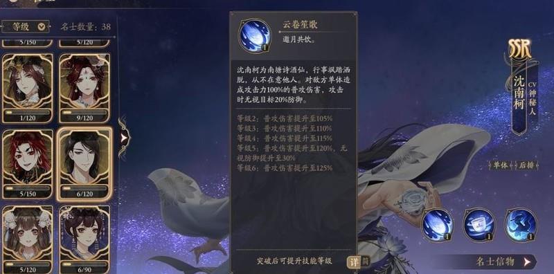 沈南柯是一名出色的单体输出角色,普通攻击可无视20点防御,明显针对单体敌人设计。被动技能在闪避后提升伤害,高阶后普攻也能触发被动效果,大招必定闪避一次并叠加一层被动,附带超高倍率伤害与斩杀时触发的马符咒效果。只需点出普攻联动被动即可轻松培养,实战表现十分优秀。