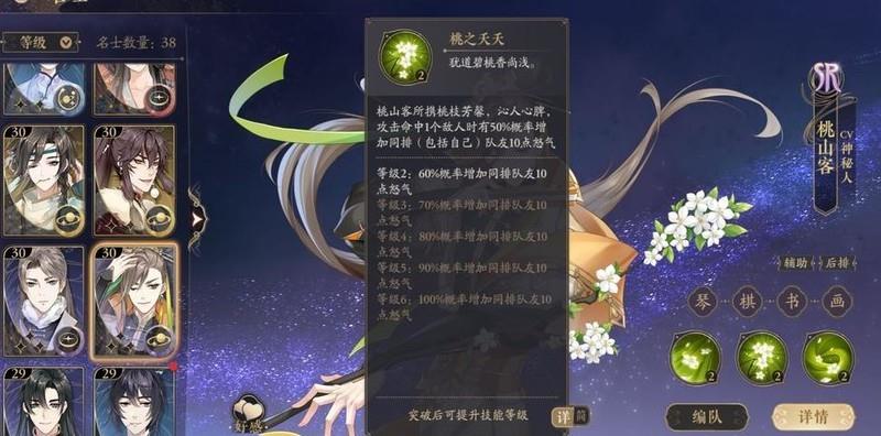 桃山客看似自恋,实则颜值与实力并存。别看技能描述简单,作用却非常实用,堪称万金油角色。普通攻击有概率为同排队友回复怒气,大招更能全体回怒,全游戏回怒效率最高。队伍搭配迷茫时,先带上桃山客准没错,绝对可靠的核心选择。