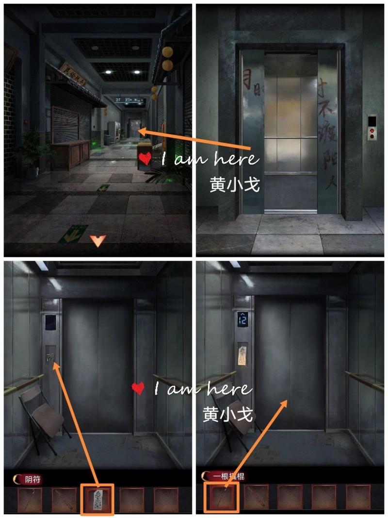 进入电梯后,将贴在阴字位置,再用强行撬开电梯门。
