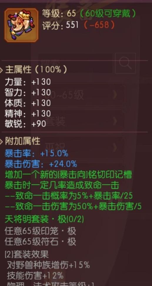 65级四象防具右槽搭配解析
