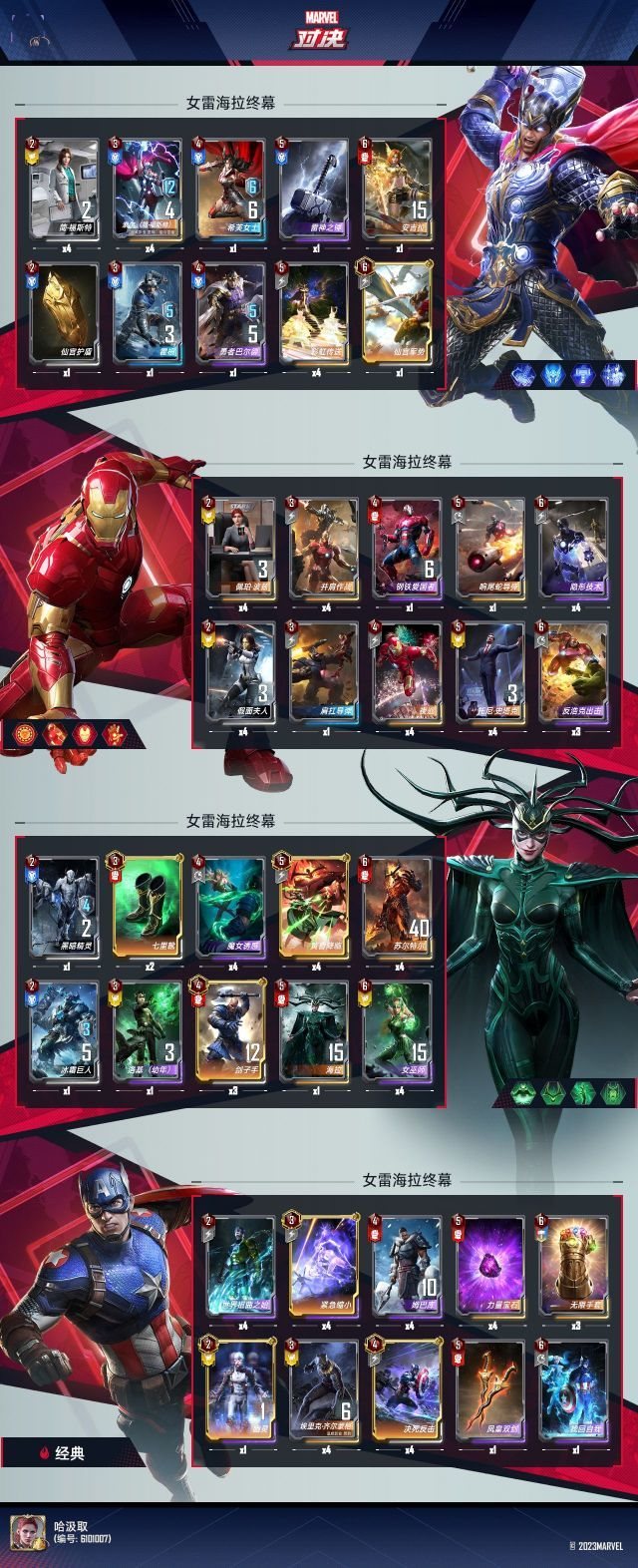 大家好,我是哈汲取,一个热爱漫威对决的普通玩家。本赛季新推出的熊座似乎不太受欢迎,多数人仍在沿用旧卡组。我也是兜兜转转,最终还是靠着女雷海拉终幕成功登顶王者,下面就来分享这套卡组。