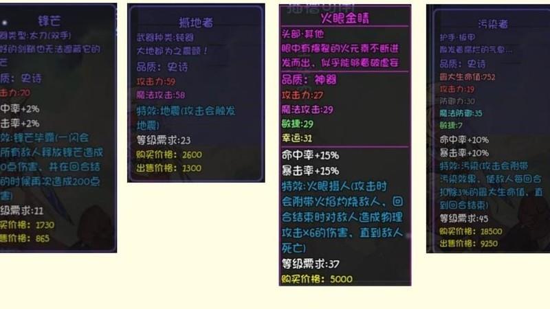 部分装备实际效果与描述存在差异,需优化调整。
