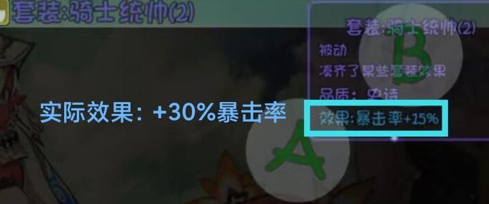 骑士统帅套装:暴击提升效果翻倍,实际增益达30点。