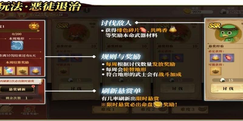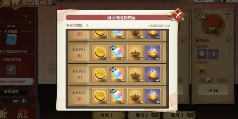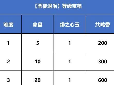 设三个难度,成功讨伐可获悬赏经验,累积达标后解锁新难度,并获取宝箱奖励。
