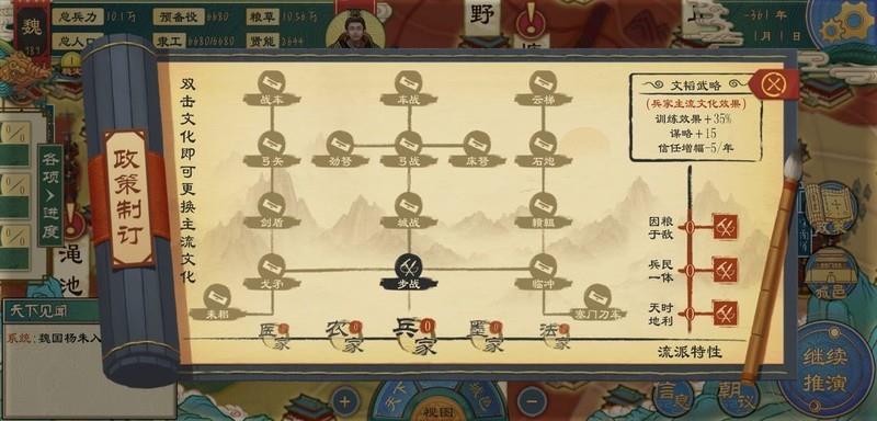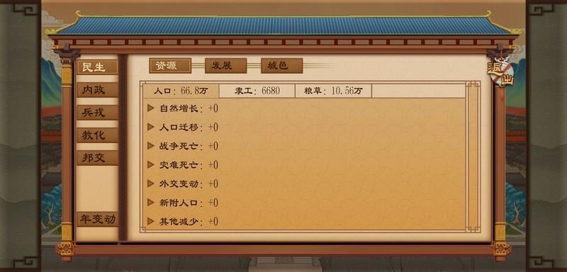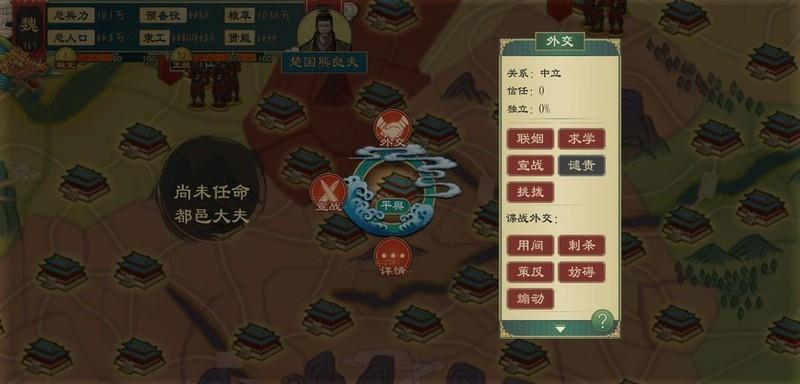 主要包括外交(含军事)、内政与政策三大方面。在进入正题前,先补充一些基础概念:贤能、粮草、人口、隶工、军队及预备役等内容新手教程已涵盖,此处不再重复。接下来重点讲解多数玩家普遍遇到且常想了解的问题。